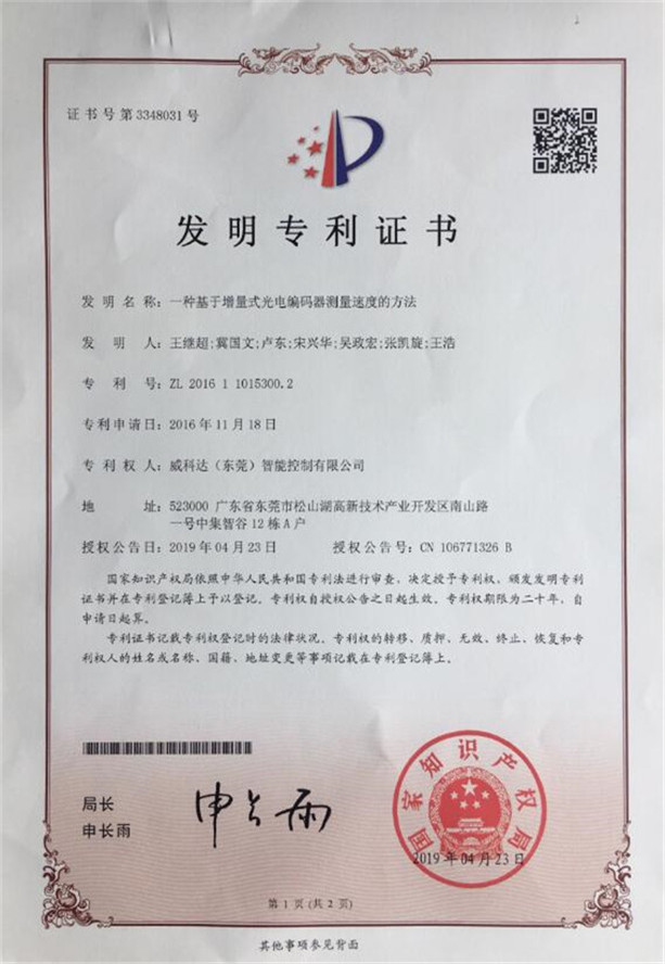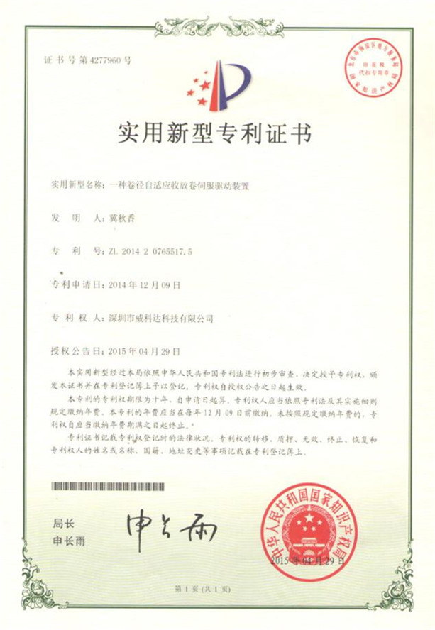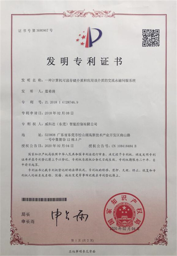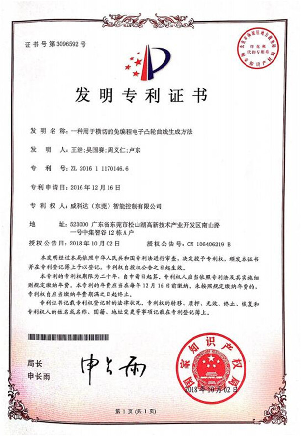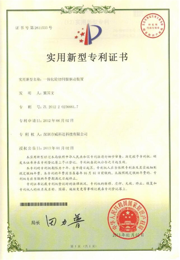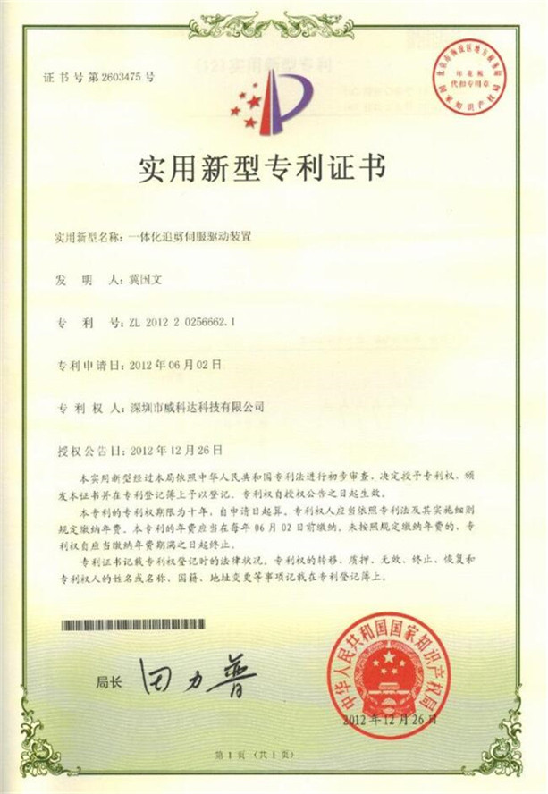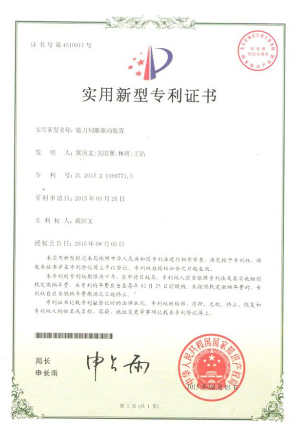 鏈刀伺服驅動裝置專利證書